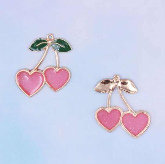 Wholesale Cute Cherry Metal Fruit Charms,Cherry Heart Charm Pendant for Necklace Bracelet Fashion Jewelry Makings DIY 27*32 mm